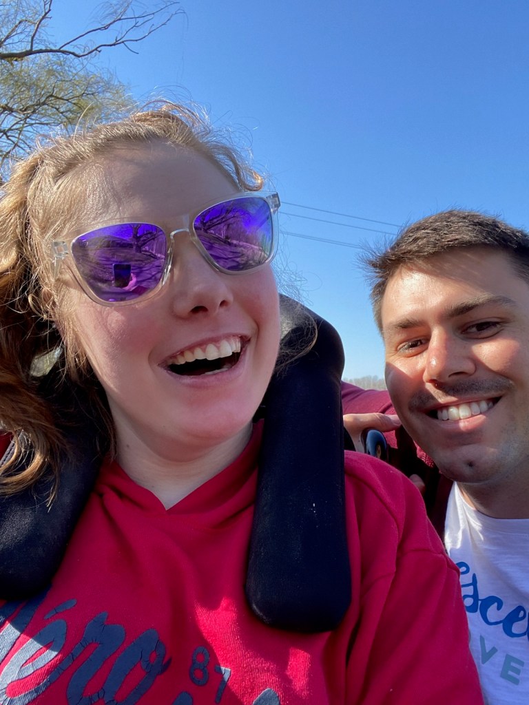 I met some others in wheelchairs and we did some stuff together. One of my favorite things to do is to go for a walk outside. It was really nice out so I go t to have a lot of walks. Sometimes I went with my new friends. Nobody walks with me like dad. I like to hold his hand when we go for a walk.