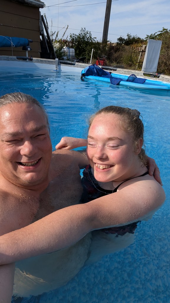 With the warm weather it was great to be able to swim in the pool. Dad leaves the pool up for the beginning of October. The goal is to have the opportunity to swim through October.